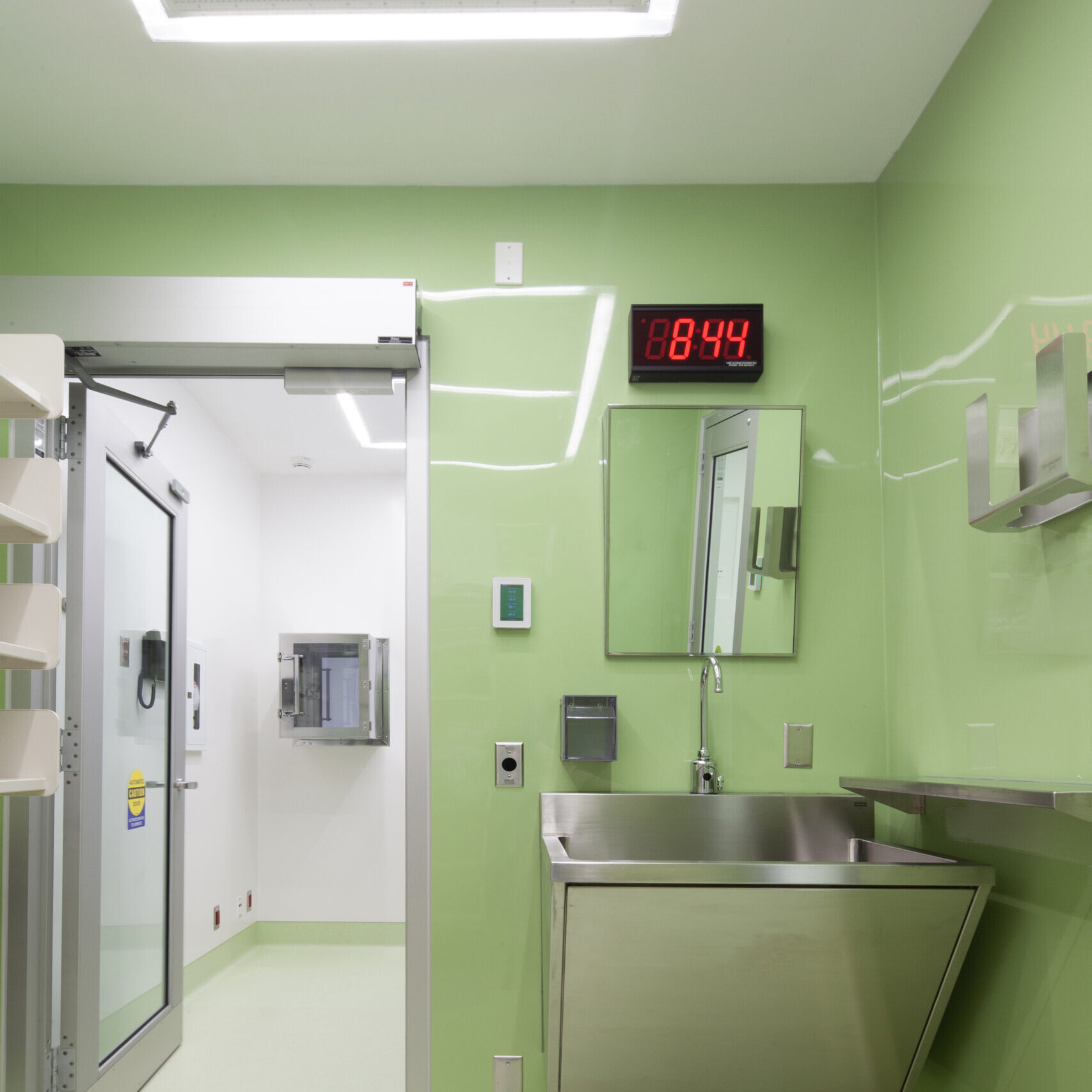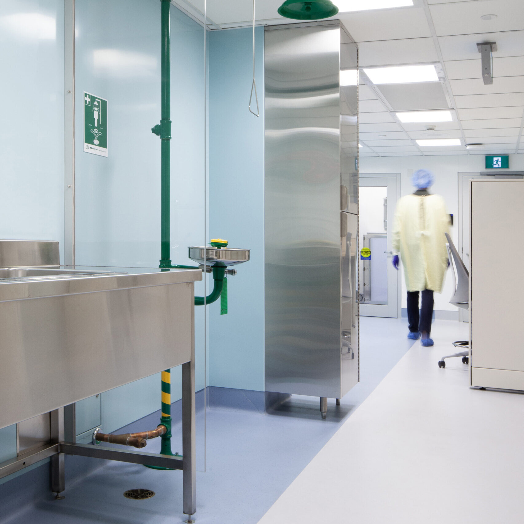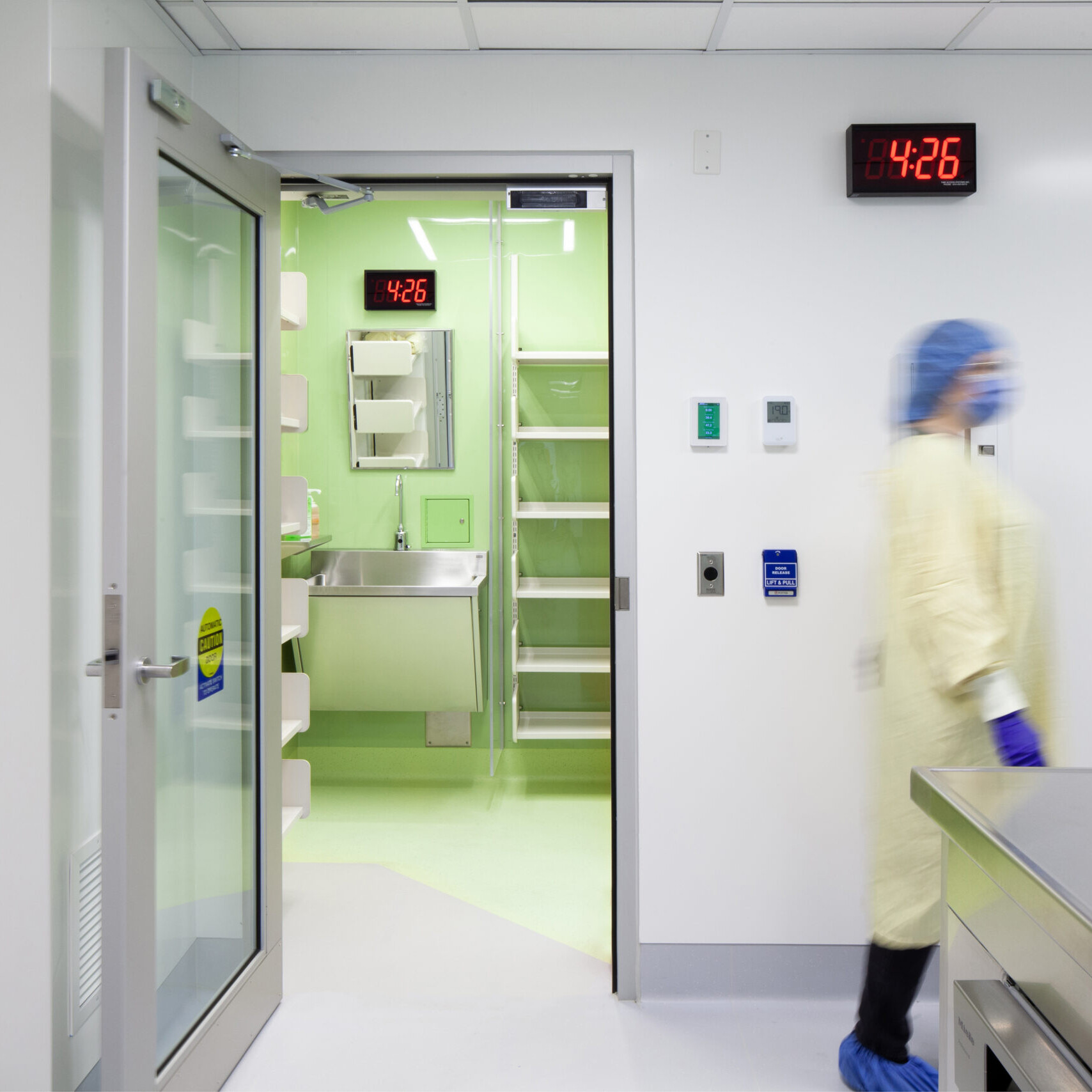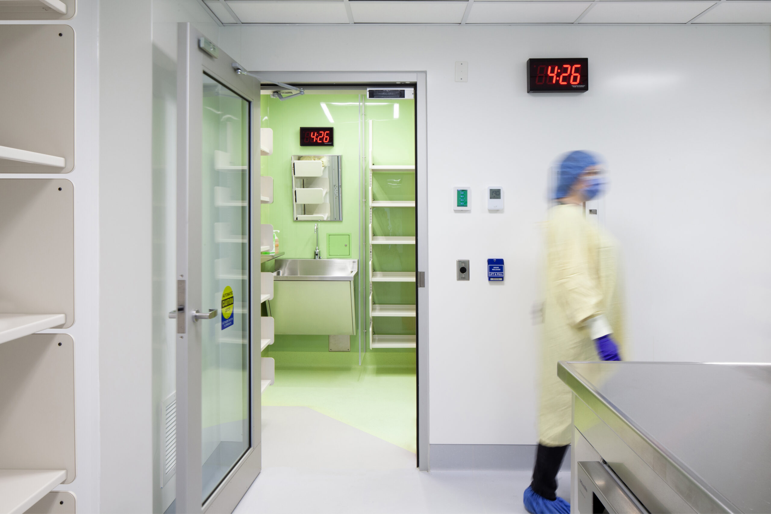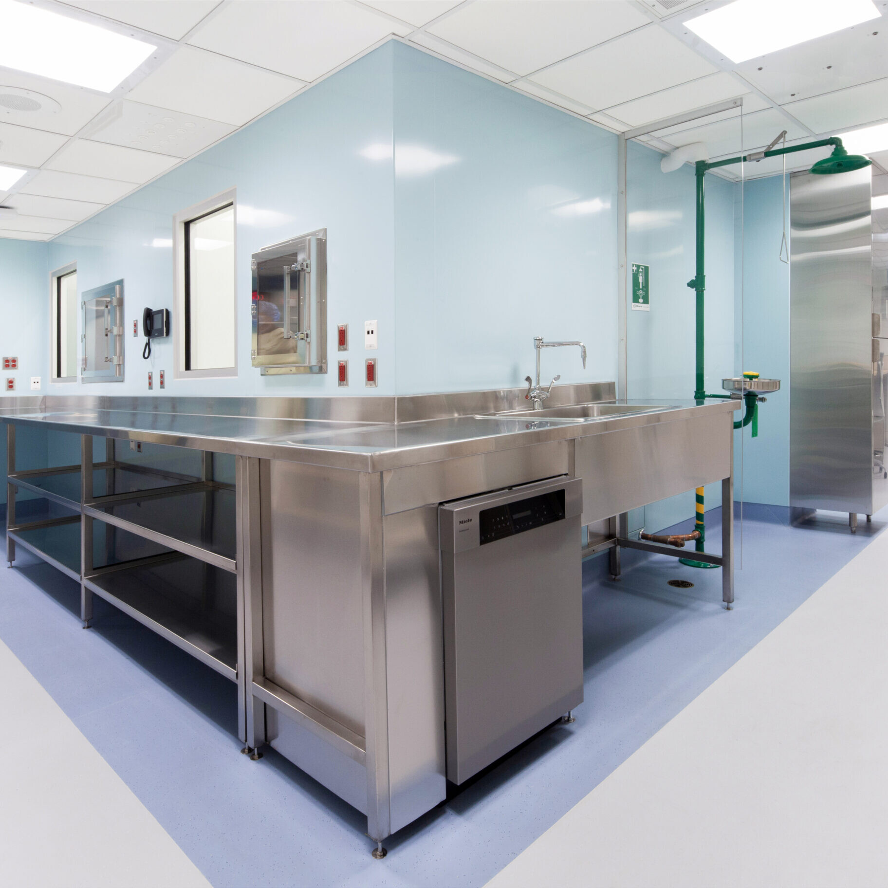 Beyond the technical improvements, KRA brought a human-centered approach to the design. The pharmacy’s interior uses a calming palette of light blues and greens to brighten the windowless environment and create a sense of ease. Stainless-steel work surfaces add a crisp, contemporary edge that speaks to the precision of the pharmacy’s work, balancing warmth with functionality.